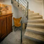 Une bouilloire électrique, un réfrigérateur et de la vaisselle sont fournis dans une cuisine équipée.