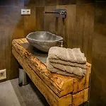Modern Chalet With Sauna Near Thuringian Forest présente une salle de bains avec une machine à laver. Les salles de bains comprennent des serviettes.